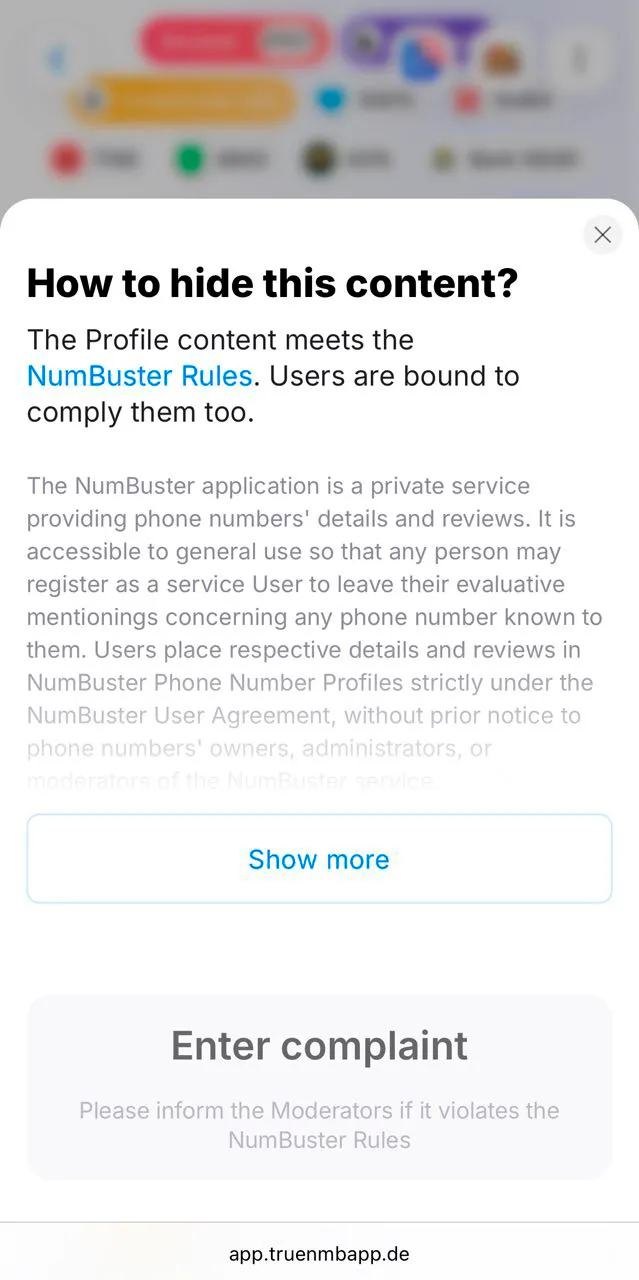 - Модераторы рассмотрят запрос и удалят текст, если он нарушает правила NumBuster или нормы языка.